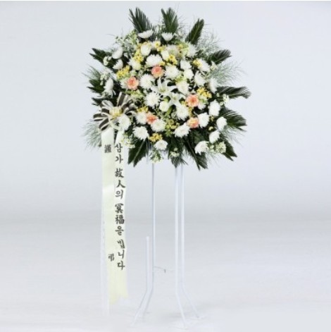 - 나무나 철제 지지대에 꽃을 고정시켜 세워 두며, 빈소 입구나 영정 앞에 가지런히 배치됩니다.